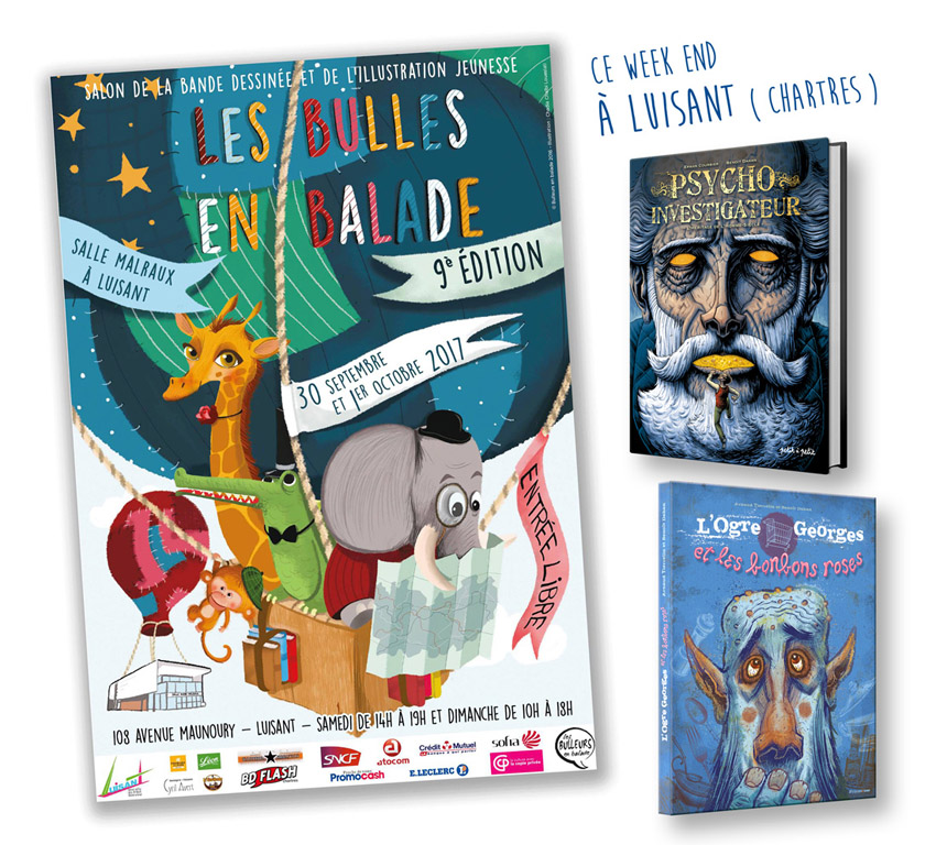 Personnellement j'y serai avec mes albums BDs "Psycho Investigateur" et le livre 4-8 ans "L'Ogre Georges & les Bonbons Roses" et je les dédicacerai sur place, et j'aurai aussi des dessins et planches originales en vente, pour tous les budgets