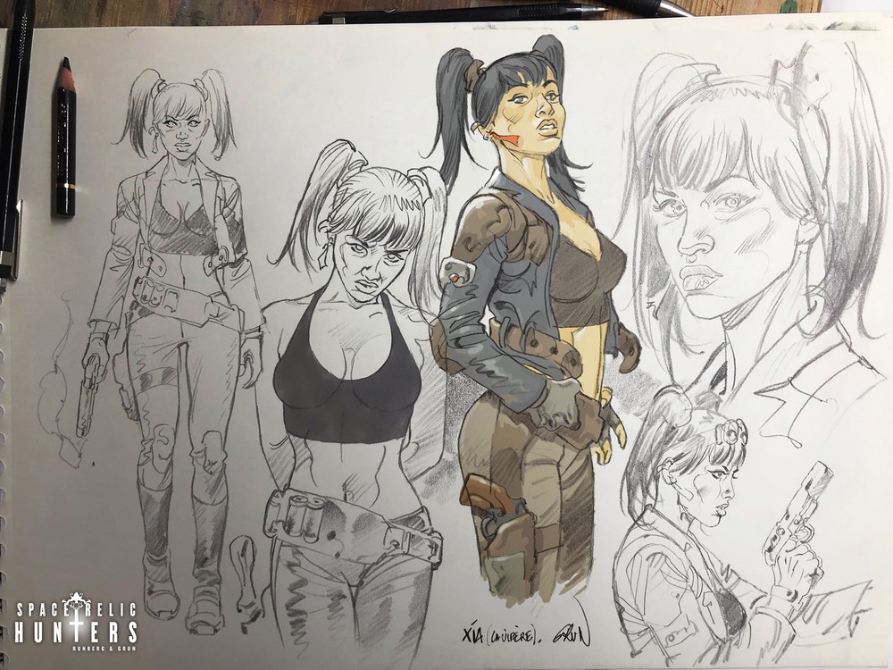 Dans cette dictature violente et répressive, anéantissant toutes formes de religions autres que celle vouée à leur propre culte, les Légions divines ont été créées pour faire respecter cet ordre. Mais malgré leur surveillance, les différents peuples et espèces continuent de vénérer en secret leurs anciens dieux. Cette situation engendre un trafic galactique de reliques aliènes, liées à de nombreux cultes dorénavant interdits. Qui dit interdit, dit contrebande et la naissance de Relic Hunters. C’est de cette activité que vivent Xia, une humaine, et Little Mercur, un alien masqué dont on ne connaît pas la race. Ils font partie des meilleurs chasseurs de reliques de la galaxie.