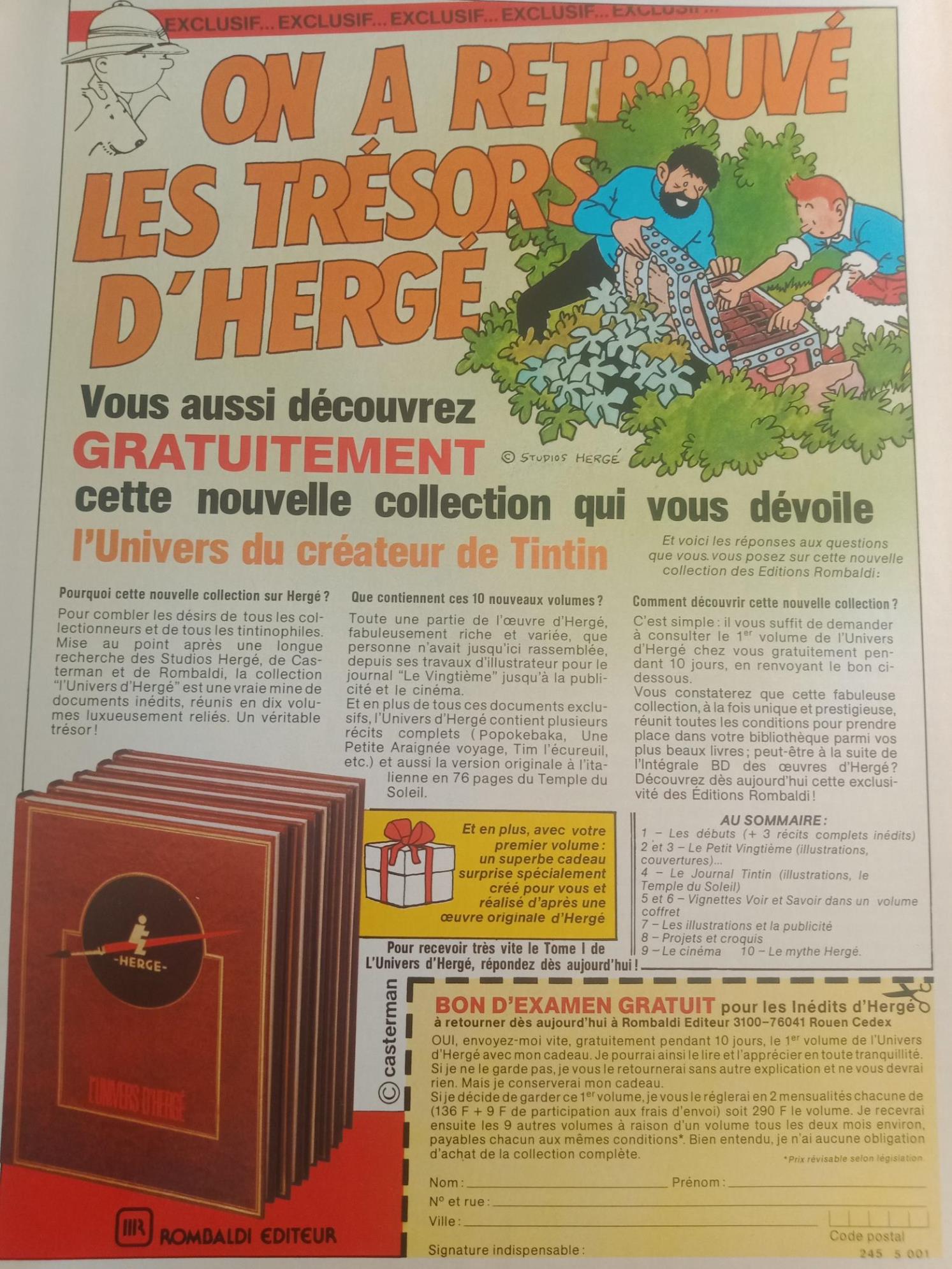 une publicité pour l'intégrale Tintin en 1986