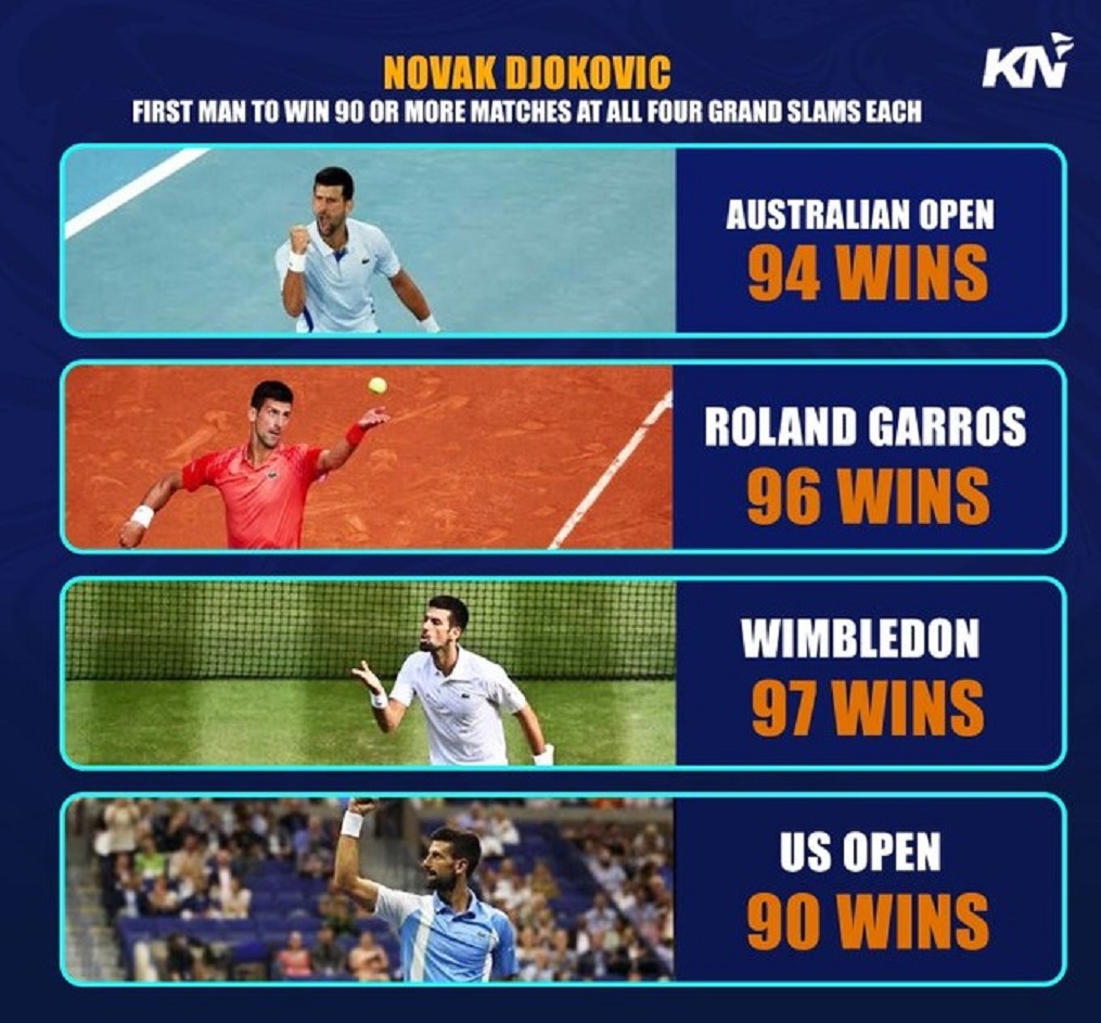 Novak Djokovic a donc remporté au moins 90 matchs dans CHAQUE tournoi du Grand Chelem.