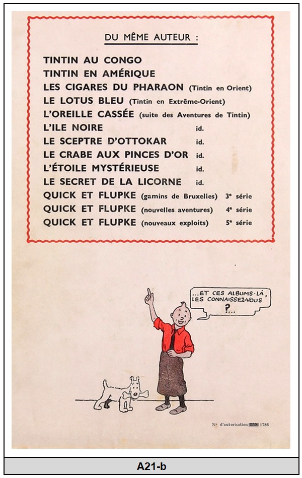 Tintin : Recensement des 4e plats série A et leurs variantes