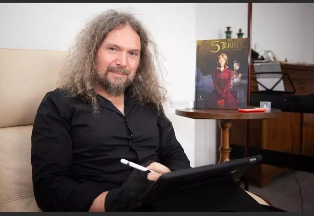 Jérôme pose les volumes et les éclairages en préparation de la mise en couleur, comme sur la planche ci-jointe