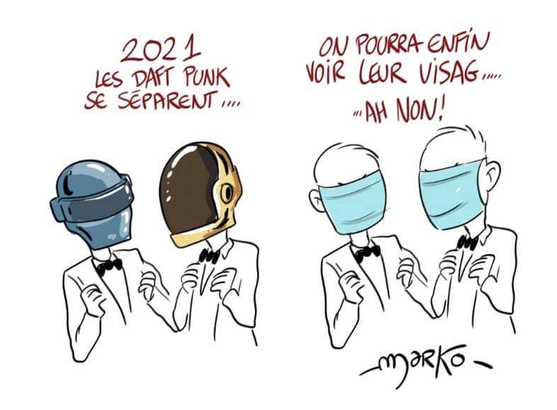 C'est une blague comparative lié à la séparation de Daft Punk, donc décès du groupe...