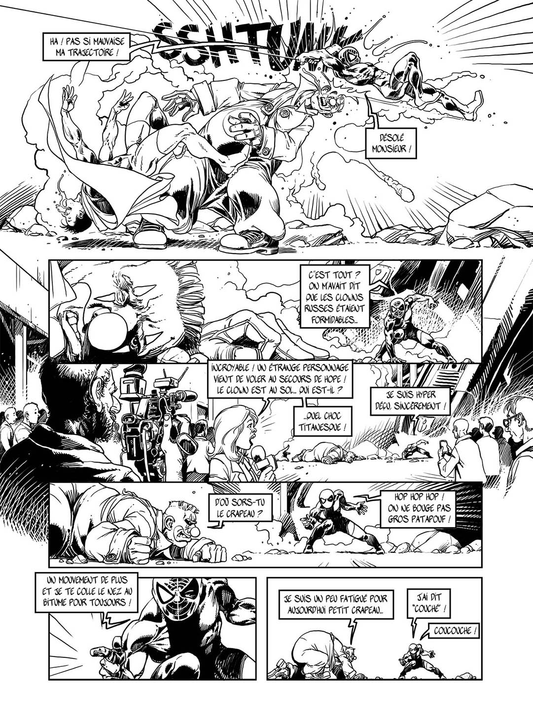 Le Rescator a écrit:Uber impressionnant ! Hope, le Clown et maintenantdès la planche 2 ... ![Révéler] Spoiler:Mygale