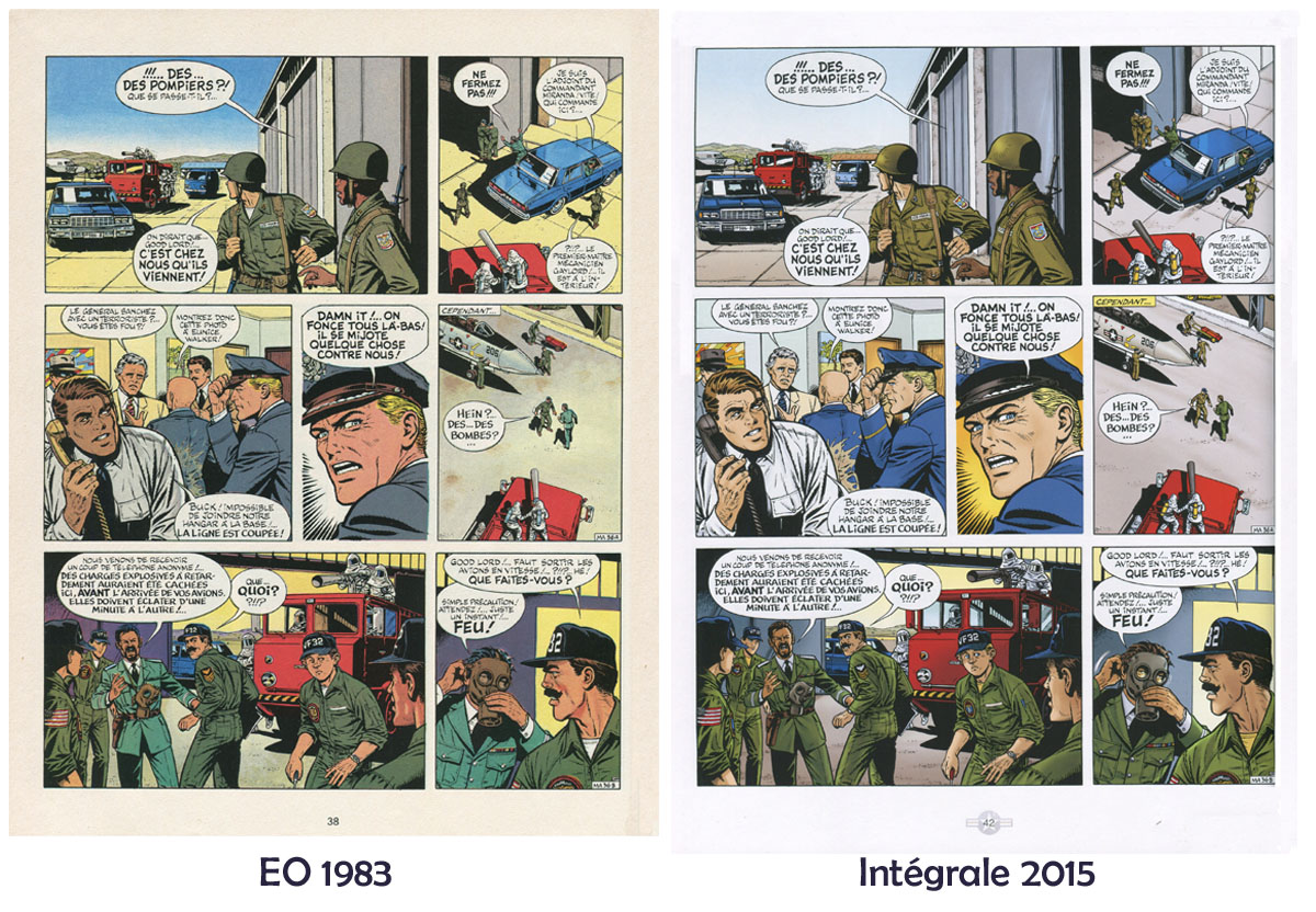 A coté de ça , je suis un néophyte en herbe, et me trouve partagé entre le charme de l'impression et du dessin à l'ancienne et ces ravalements de façade un peu "marketeux" sur les bords! Je n'ai pas d'éléments de comparaison, ne possédant pas l'ancienne mouture. Mais si c'est comme pour la "recolorisation" de l'intégrale Tanguy et Laverdure, c'est bien plus qu'un simple nettoyage! J'aimerais vraiment pouvoir comparer les deux versions page par page!