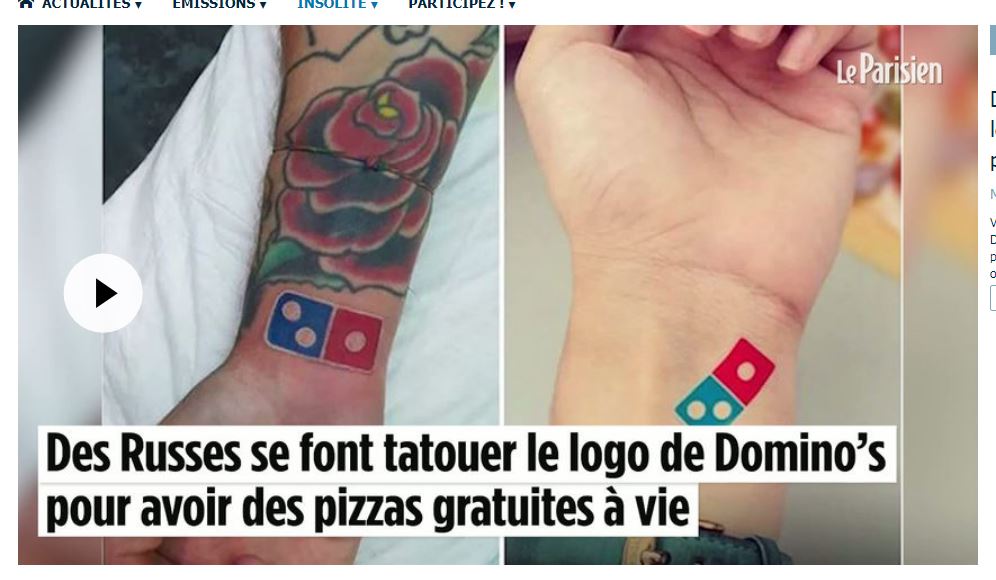 « Des Russes se font tatouer le logo de Domino’s pour avoir des pizzas gratuites à vie »