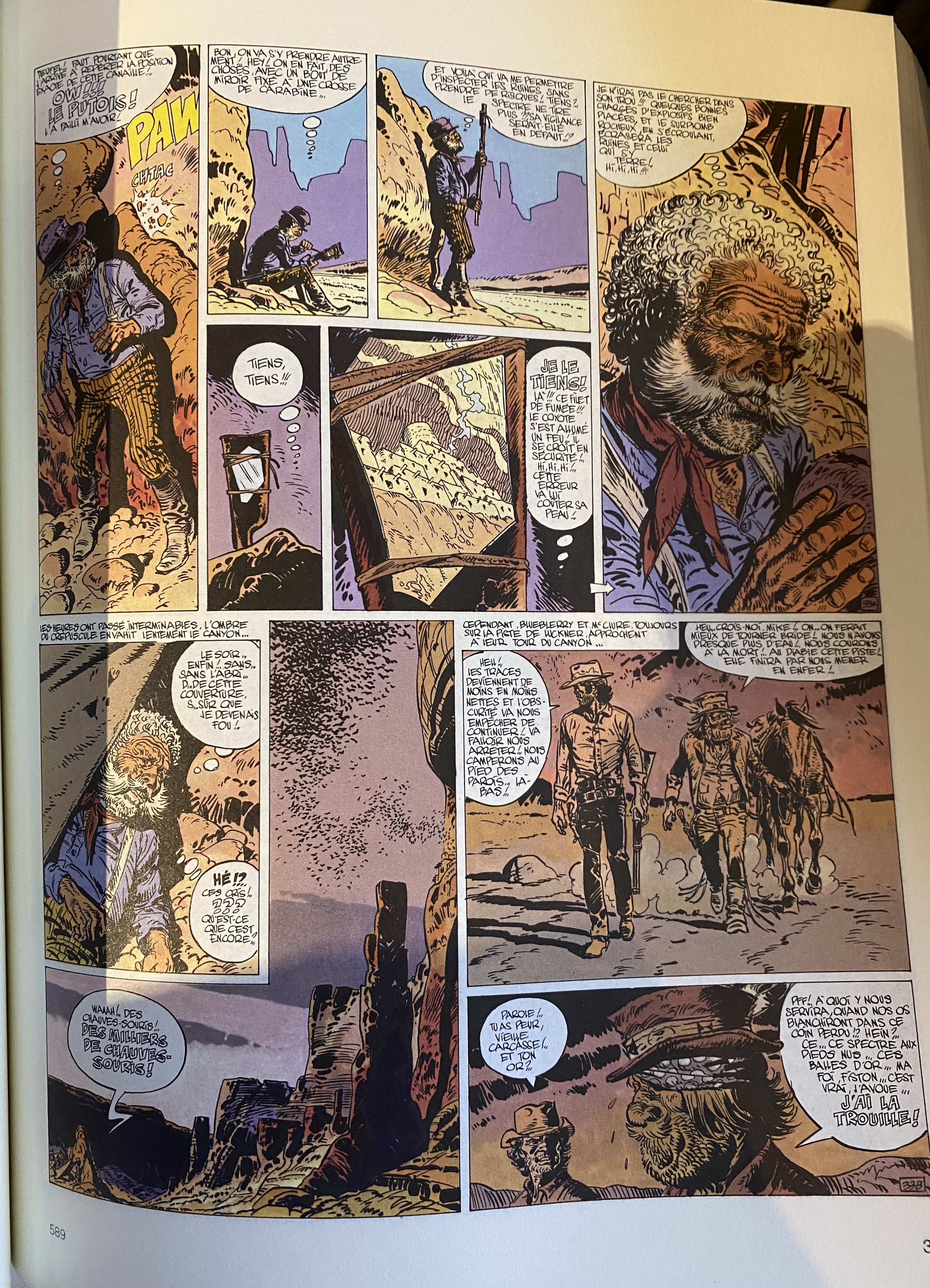 Et pour répondre à ceux qui pensent que j’aurais fait une belle bêtise en choisissant la planche de Blueberry, je répondrais qu’il vaut mieux accrocher à son mur, une belle planche du spectre aux balles, dessinée par un génie à l’apogée de son art, plutôt qu’un dessin tracé par un tâcheron de studio, avec une énorme erreur au niveau des pattes de la bestiole, dont le seul intérêt réside dans un fantasme spéculatif.