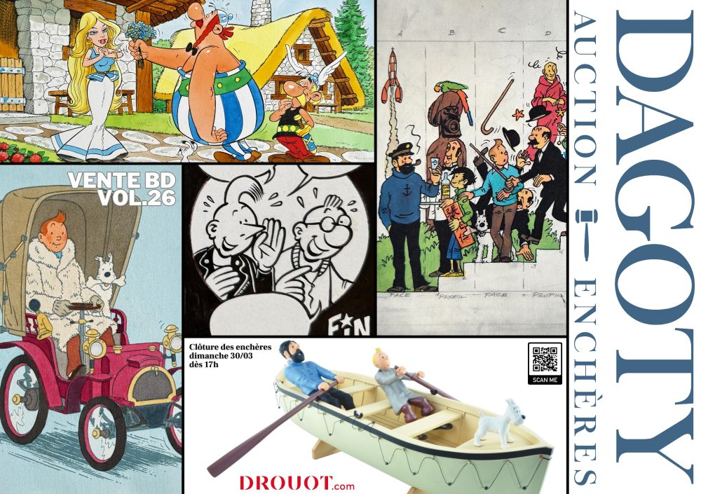Dagoty a écrit:Bonjour à tous les fanatiques du 9e Art, ma vente BD Vol.26 est en ligne et se termine le dimanche 30 mars =>https://drouot.com/fr/v/163922