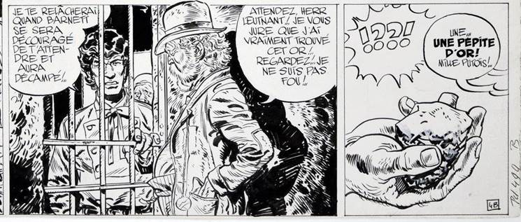 C'est fouillis mais riche. J'aime beaucoup les contrastes clairs/obscurs puis contre-jours qui mettent en évidence les personnages et la pépite. Et quelle richesse dans les expressions et notamment des visages ..