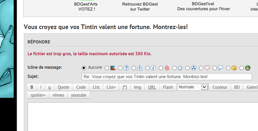 montral7 a écrit:Les images ne passent pas? Pourtant bien lisibles et acceptées selon ma connexion. C'est dommage car cela permet de se faire une idée. Connaissez vous un expert à qui envoyer les photos de cet album pour avoir une idée sur cette édition pirate?