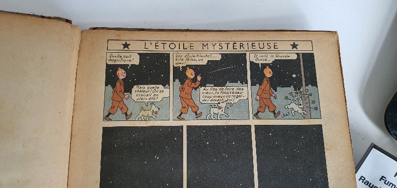 carbonnieux a écrit:Achat récent de cet album datant de 1934 avec sa couverture de Hergé et sa maquette correspondant à celle des Cigares du Pharaon paru la même année chez Casterman (petite image imprimée, dos toilé rouge en tissu)