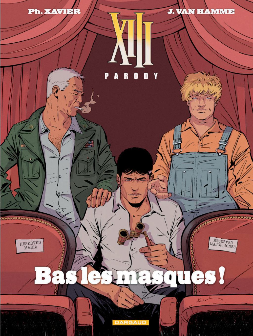 XIII Parody - Bas les Masques !", le mini-récit parodique de sa propre série culte écrit par Jean Van Hamme pour les 40 ans de la naissance de XIII dans le journal Spirou avec la complicité de son compagnon de jeu, Philippe Xavier, qui fait des merveilles pour se glisser dans le style de Vance (32 pages - 10 euros) :