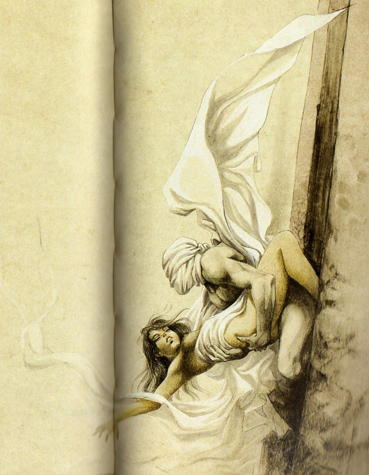 On remarque la similitude de la forme du tas de bois aux pieds de Julie, avec celle du tas de corps blessés, décédés aux pieds de Marianne :