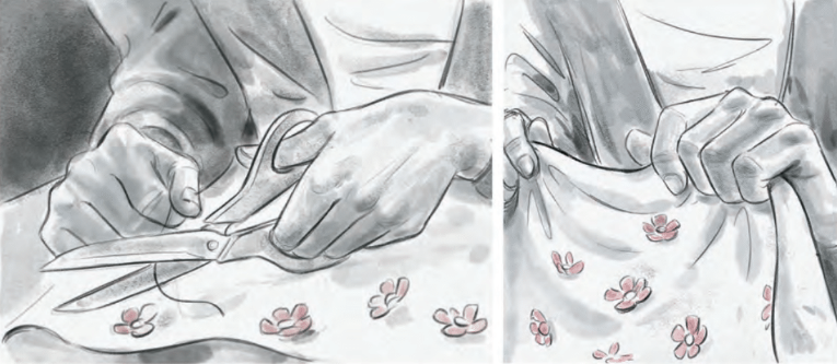M.K. : Narrativement, c'était assez difficile de mettre le récit en place avec les nombreux retours dans le passé. Il fallait donc bien distinguer les deux époques. J'aime bien le noir et blanc, notamment au cinéma qui m’a beaucoup inspiré, parce qu’on peut pousser les contrastes. Pour les couleurs, j’ai voulu insister sur le rose et le rouge qui rappellent celles de la peau.