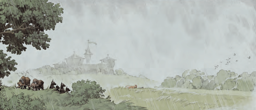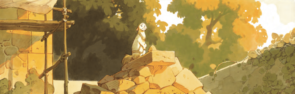 F.D. : Complètement. Après les tons froids et neigeux des précédents, travailler la lumière de l’été était rafraîchissant. J’ai cherché à synthétiser davantage les décors sans perdre en richesse visuelle. C’est une évolution de mon dessin.