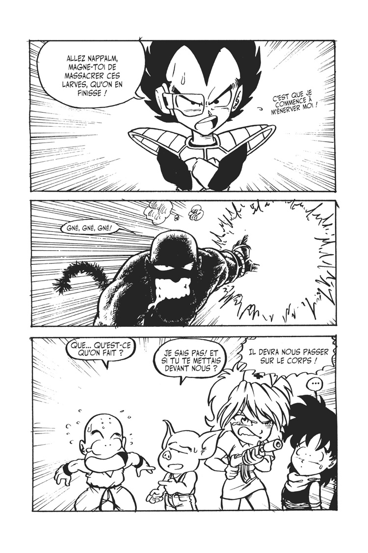 Dragon Fall est une parodie plus que délirante de la série des Dragon Ball qui s’en prend également à tous les icônes de la culture populaire (Star Wars, Matrix, le Marsupilami...) et bien entendu manga.