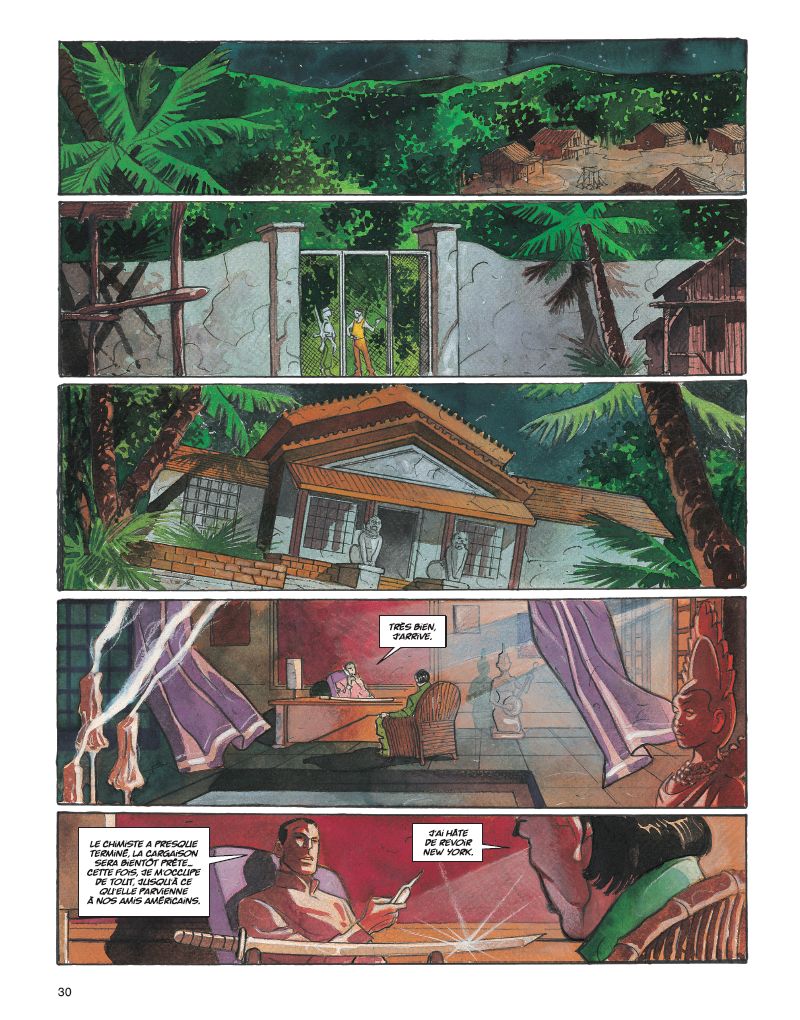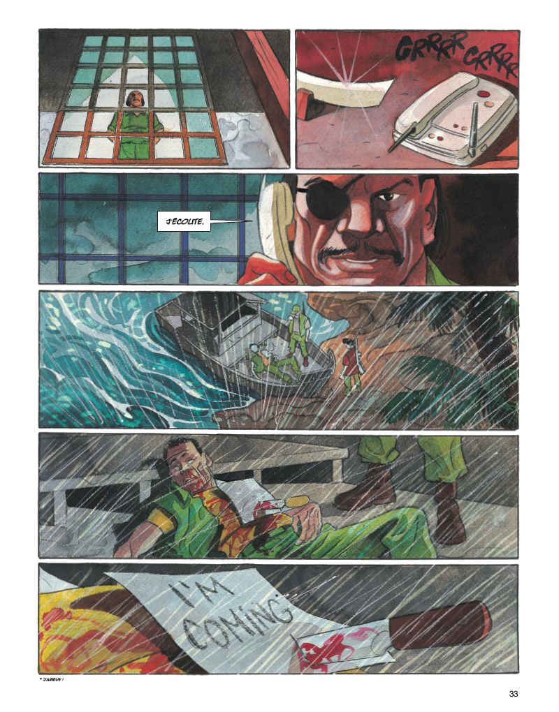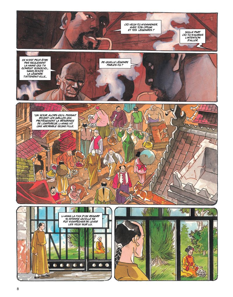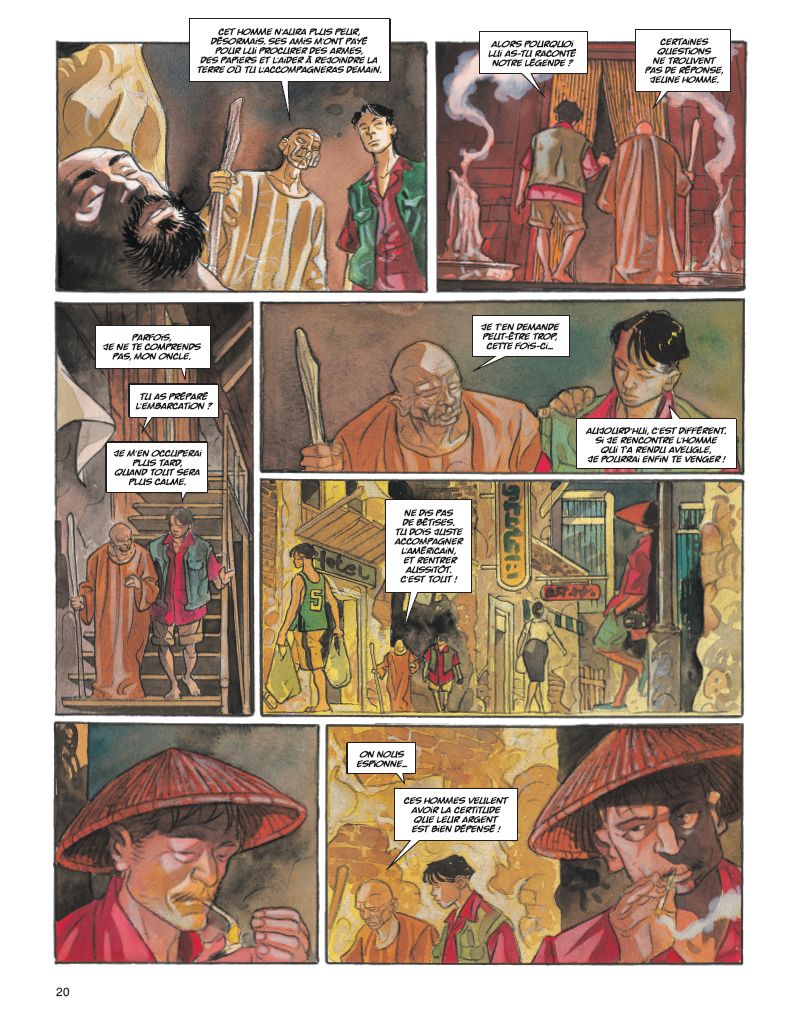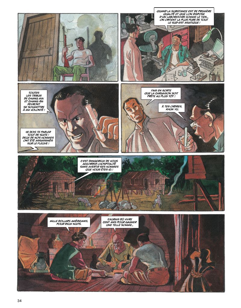 Le tome 1 des Larmes d’opium avait laissé le lieutenant Martin Penn en proie à une haine incontrôlable. Aujourd’hui, la question n’est plus de savoir si Martin cédera à la même violence que l’homme qui a détruit sa vie… mais s’il parviendra enfin à accomplir sa terrible vengeance. Chef de l’opération baptisée " Larmes d’opium ", Martin Penn était parvenu à démanteler un important réseau de drogue. La vengeance de Khun-Yu, ponte du Triangle d’or, ne s’était pas fait attendre : la femme et le fils de Martin furent retrouvés décapités… Évadé de l’hôpital psychiatrique où il était interné, il a peu à peu remonté la piste des assassins... Aidé à son insu par une mystérieuse société secrète, Martin se rend à Bangkok. Sa rencontre avec un étrange aveugle et un gamin des rues le mènera sur les terres de Khun-Yu, le commanditaire de l’assassinat. Au cours de ce voyage, il goûtera à l’opium, se réfugiant dans un monde de légendes faites d’amour et de vengeance. Pendant ce temps, à New York, le directeur de l’hôpital psychiatrique où Penn a été interné suit de près les agissements de son ancien patient… En combinant la rigueur du scénariste Roberto Dal Pra’, passionné du genre policier, et le talent du dessinateur aux multiples facettes Giancarlo Caracuzzo, on obtient ce résultat surprenant : l’alliance habile et audacieuse d’une intrigue très noire et de dessins aux couleurs flamboyantes.