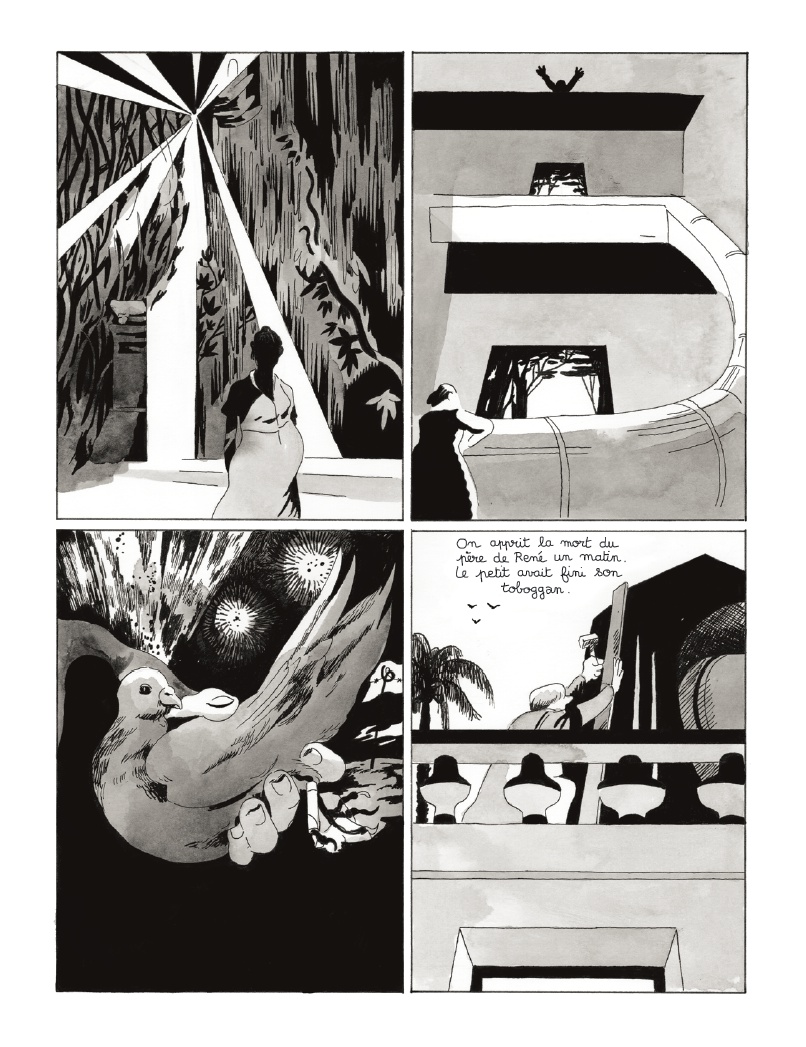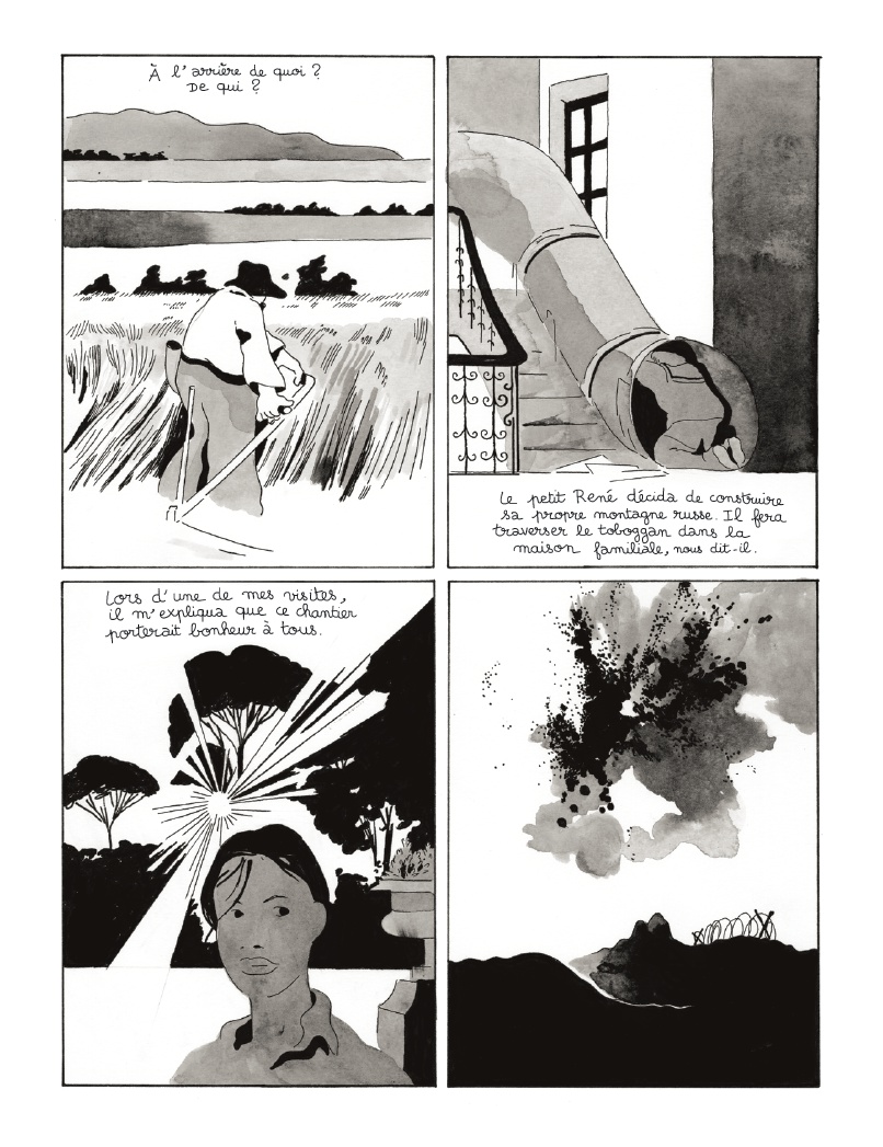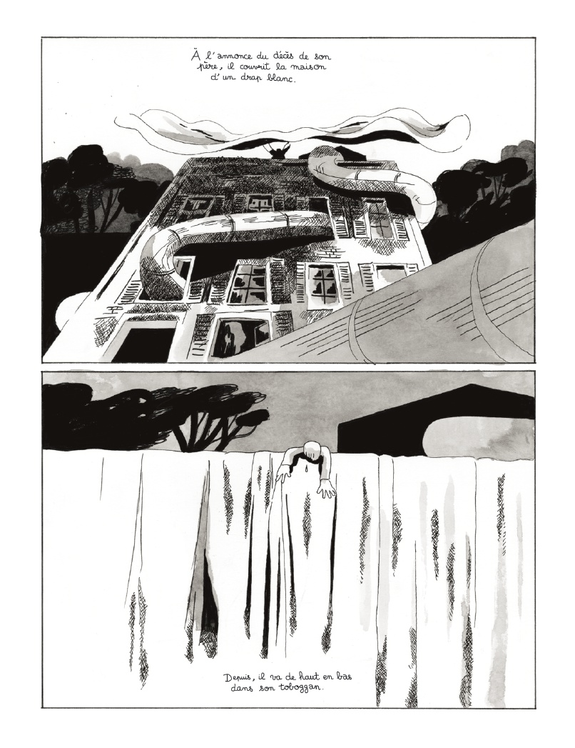En apprenant la mort de son père, le petit René entreprend de construire un gigantesque toboggan dans la maison familiale. Sans le savoir, il va affecter la cohérence de cet univers. Les deux familles ne tardent pas à assister à d’étranges événements. Un ptérodactyle fait son apparition dans le ciel et des fantômes arpentent soudain les chemins du parc. Un jour, René découvre que son toboggan ouvre des fenêtres temporelles. Et si cette invention pouvait apaiser les blessures et les déchirements ? Et si les traumatismes de la guerre pouvaient être effacés par la puissance salvatrice de la vie?