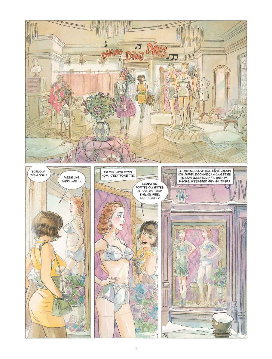 A h, si les mannequins du magasin pouvaient parler... Leurs yeux de plastique en ont vu défiler, des employés. Ils en connaissent tous les petits secrets... sauf un ! Un secret minuscule qui se niche chez Séraphin, l'acariâtre patron des lieux. Un secret qu'Aline, la nouvelle dactylo, va découvrir par inadvertance. Et qui pourrait faire du magasin Divine une bien triste comédie, s'il venait à être révélé...