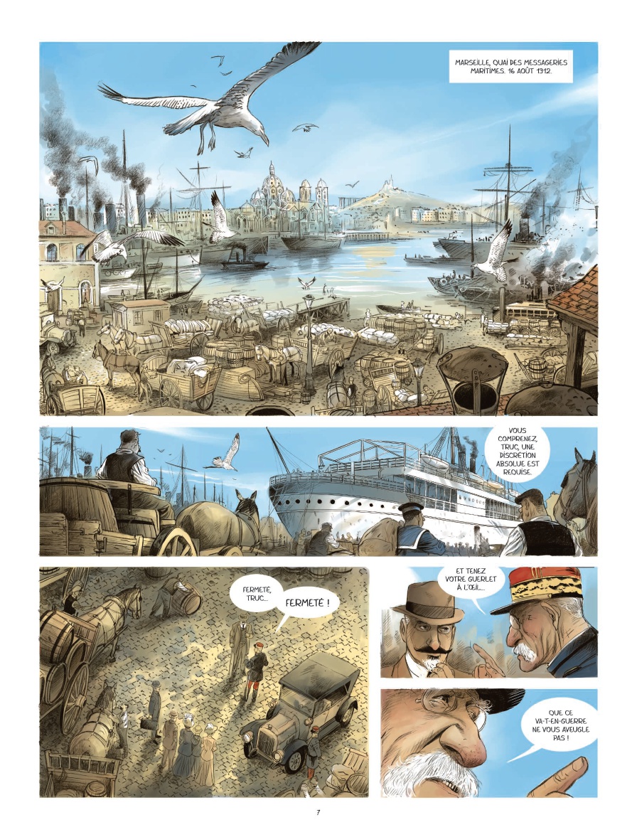 La danseuse aux dents noires marque le grand retour d'Éric Stalner au sein du label Aire Libre. Sur un scénario épique inspiré de la vie de l'aïeul de Jean-Laurent et Olivier Truc.