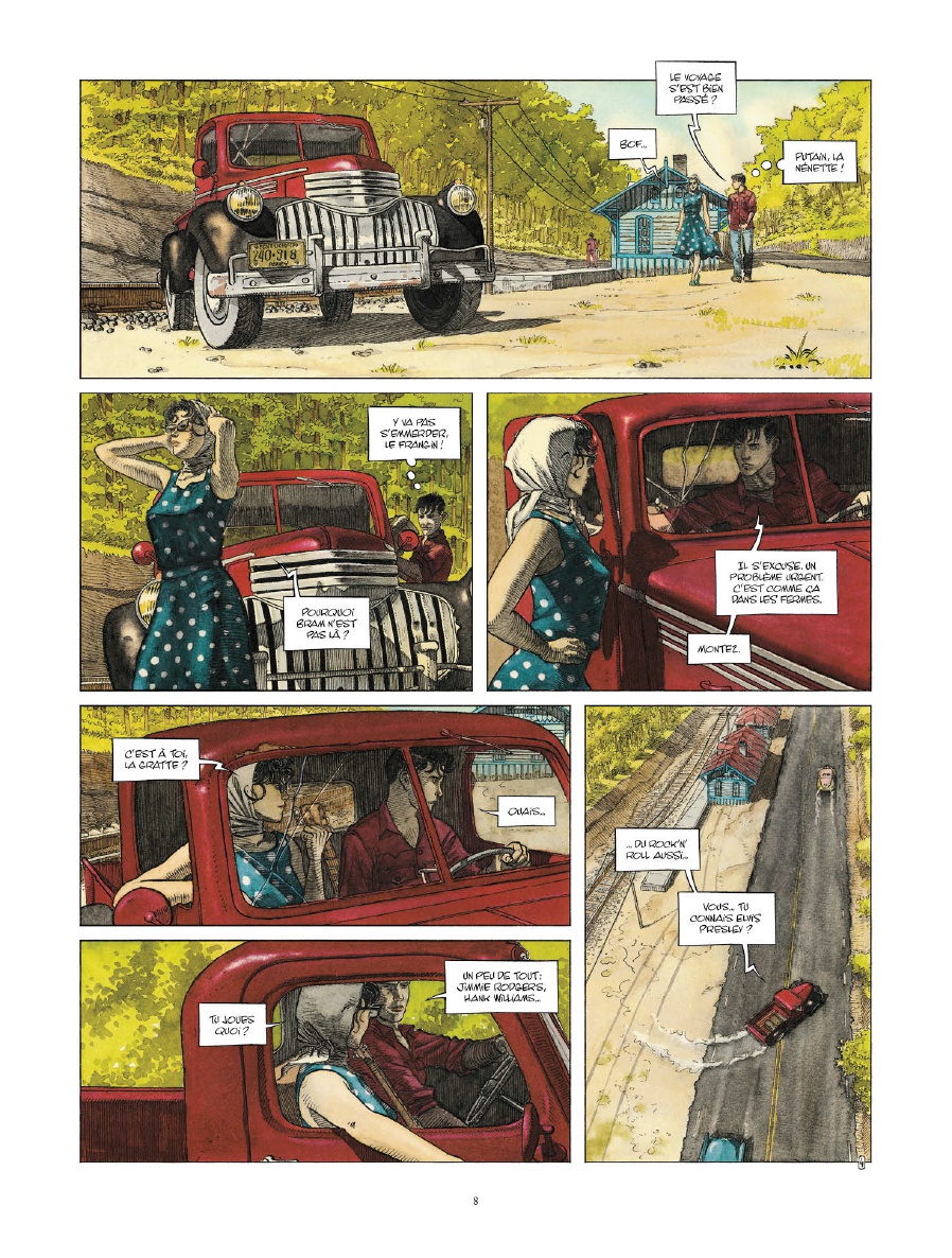Dans Rockabilly, c'est la complexité des personnages et le contexte historique qui donne tout son sens au récit : Vers 1955, le blues, la country et le rock'n'roll font leur apparition et viennent illuminer la vie d'une génération de jeunes gens qui souffrent au quotidien. Dans les Appalaches, sur la côte Est des États-Unis, les red necks, c'est à dire les Blancs issus de la classe pauvre qui travaillent la terre sous le soleil, vivent dans la misère et ne jurent que par la Bible, la winchester et le bourbon ! Dans une époque où l'adolescence n'existe pas, les jeunes trouvent alors leur épanouissement dans la musique... Rockabilly illustre les déviances malsaines de cette famille prisonnière de sa condition. Un seul exutoire pour nos personnages Barbie et Hank, le rock'n'roll