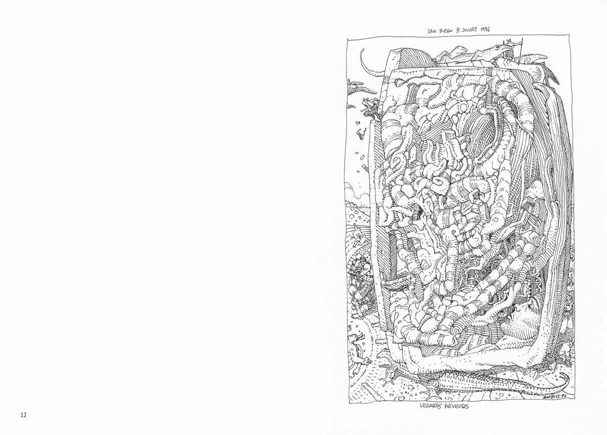 L ézards rêveurs réunit deux carnets personnels de Jean Giraud Mœbius, tous deux réalisés entre 1996 et 1999. Ils forment ensemble un petit corpus de textes et de dessins créés avec la ferme intention de saisir les traces de ses rêveries graphiques, sans rien perdre de ce qui se joue derrière la réalité apparente du monde...