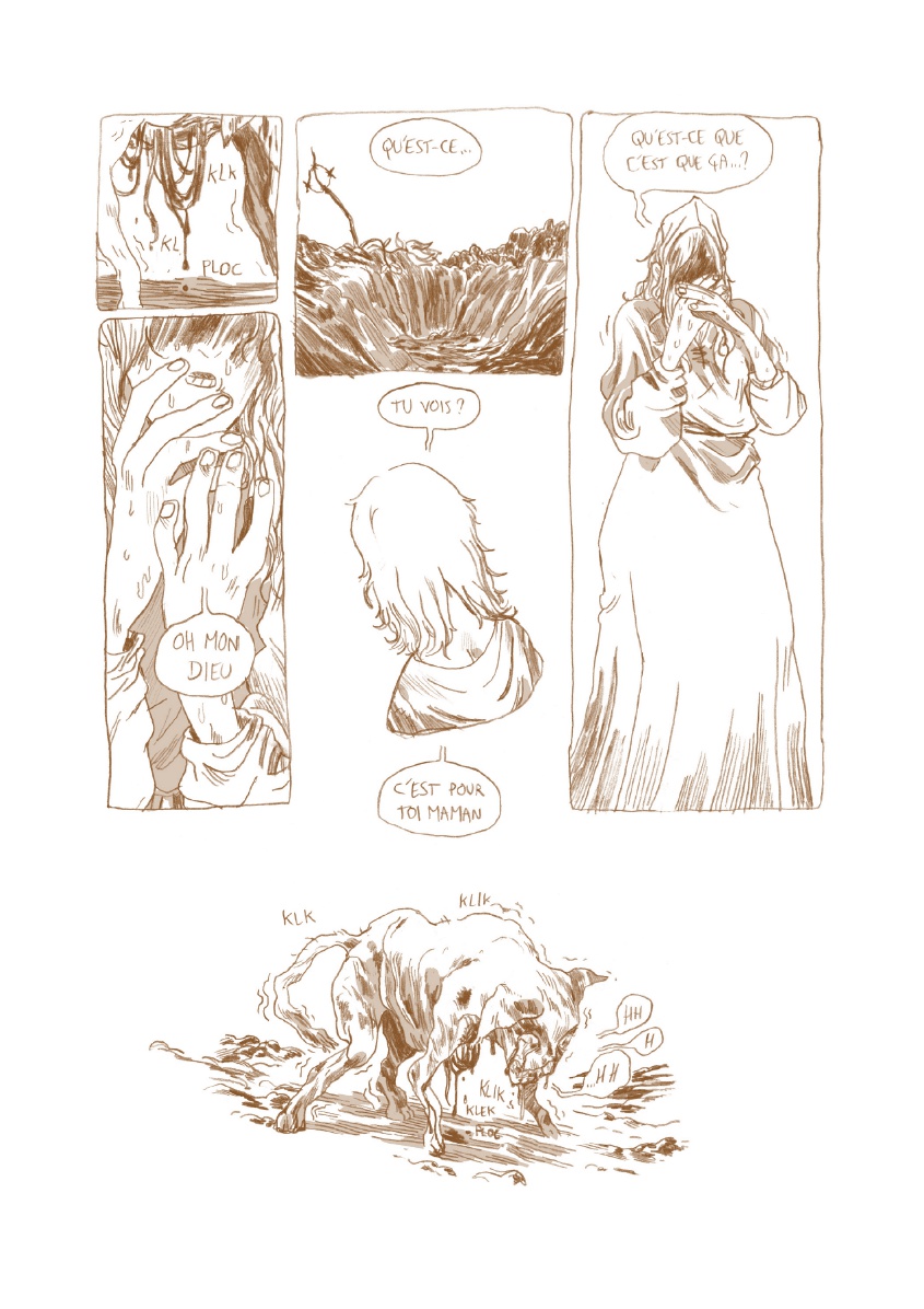 Ongle et Pluie sont séparées. L'une, livrée à elle-même dans la forêt, perd doucement pied avec le réel et le monde des humains.