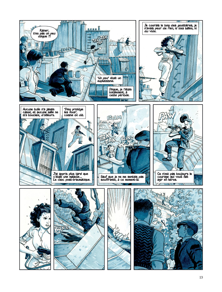 4 août 1944. Madeleine - alias Rainer - et ses camarades FFI de la Saint-Just sont brutalement tirés de leur sommeil par un milicien lâchement embusqué sur les toits parisiens. Une fillette innocente tombe sous ses balles. Folle de rage, Madeleine se lance alors elle-même sur les toits pour rendre justice... Elle reçoit ensuite une mission inattendue : éliminer un traître dont la réputation de résistant est pourtant intacte au sein des FFI.