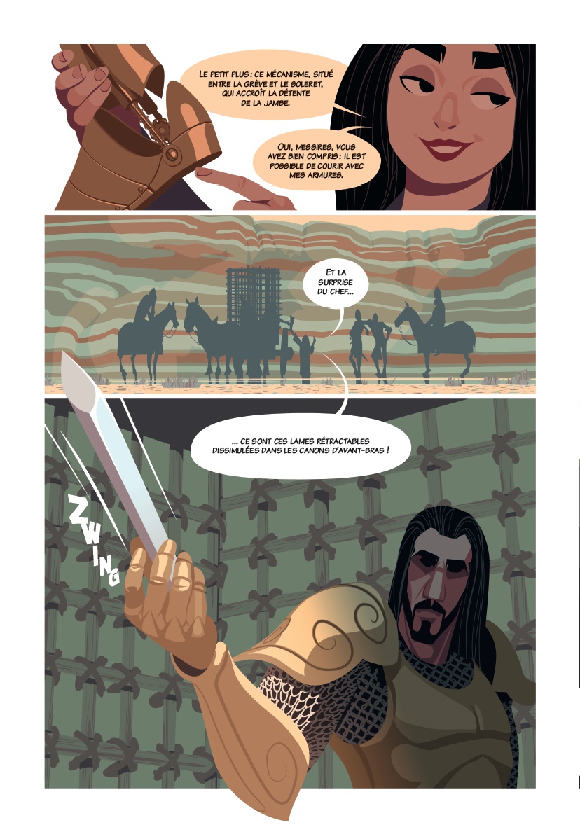 ienvenue au XIIe siècle, cette époque délicieuse où porter une armure en métal sous un soleil brûlant est à la mode ! Séraphine, forgeronne émérite, arpente les déserts brûlants de la Terre sainte à la recherche d'une escouade de guerriers assez téméraires - ou inconscients - pour protéger son village natal des croisés Francs qui menacent de revenir piller les habitants sous peu.