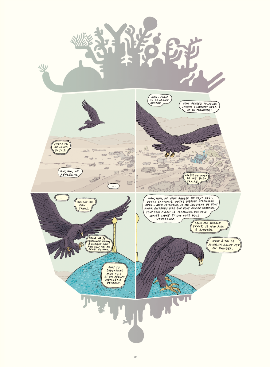 Mélangeant science-fiction, mythologie et géopolitique, Tongues peut être considéré comme le magnum opus d’Anders Nilsen, un récit d’une ampleur rare et d’une ambition folle. Sur le plan graphique, l’auteur américain s’est surpassé et sa narration, au sein de laquelle s’entremêlent personnages, lieux et époques, est portée par un dessin à la fois maîtrisé et explosif, produisant des pages d’une beauté folle et subjuguante.