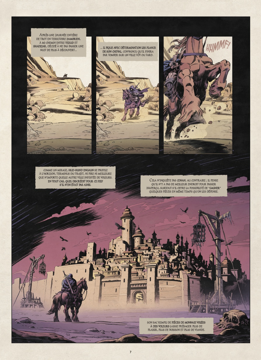 ans cette aventure inédite, Conan qui n'est pas encore roi, accepte une mission simple : délivrer la fille d'un chef de clan, soi-disant enlevée par un rival. Mais dans les ruelles fétides de Hud-hund Engaun, les apparences sont trompeuses...
