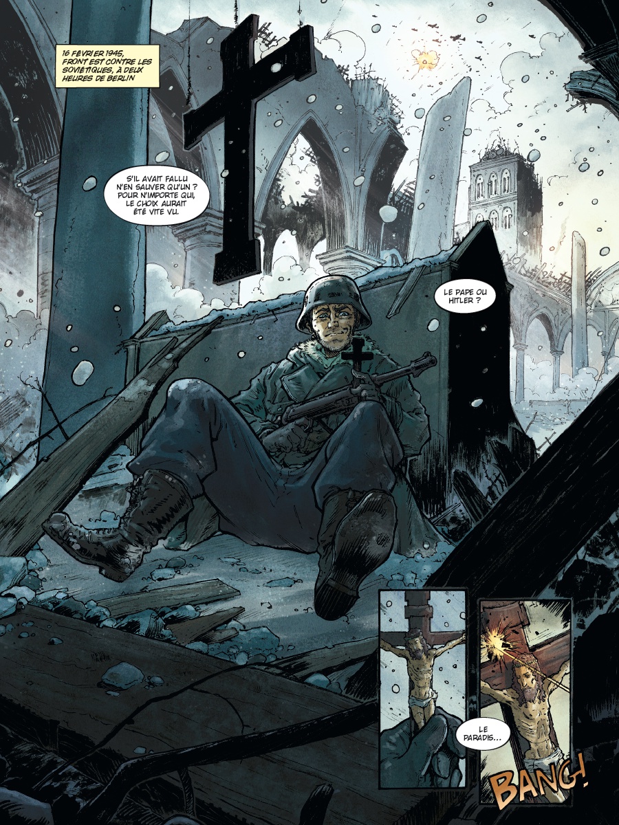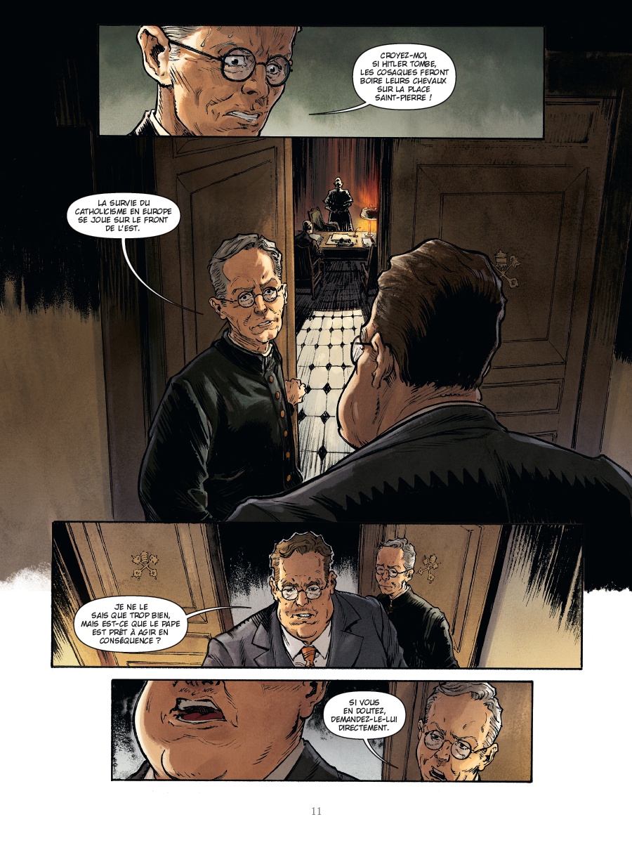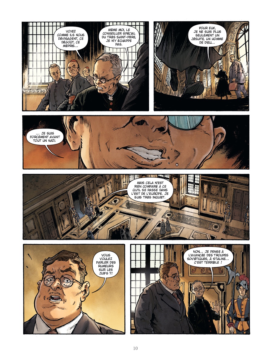 Basé sur des faits réels et des sources historiques rares issues des archives allemandes et russes (Neuhaus a été capturé par l'Armée rouge à la fin de la guerre), le nouveau diptyque du journaliste Jean-Christophe Brisard nous plonge au coeur des intrigues politiques mêlant l'Allemagne nazie et le Vatican. Aux côtés de Michael Malatini et de son dessin percutant, l'auteur nous offre un thriller historique passionnant, entre fiction, espionnage et drame religieux, qui interroge le rôle de l'Église durant la Seconde Guerre mondiale.