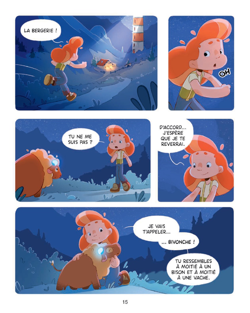 a petite Liv, qui vit avec son grand-père berger, a découvert le plus grand des secrets de la montagne : Bivonche, une sorte de bébé buffle aux cornes magiques dotées d'incroyables pouvoirs ! Ensemble, ils vont vivre mille jeux et aventures, avec la montagne qui soudain, devant leurs yeux, devient un territoire de surprises enchantées... Mais Liv et Bivonche ignorent encore que le petit buffle, avec ses cornes bleues translucides, est issu d'une précieuse race de gardiens de la montagne et qu'il suscite bien des convoitises...