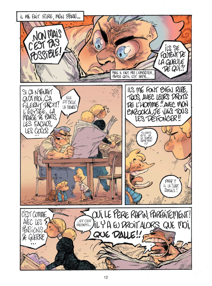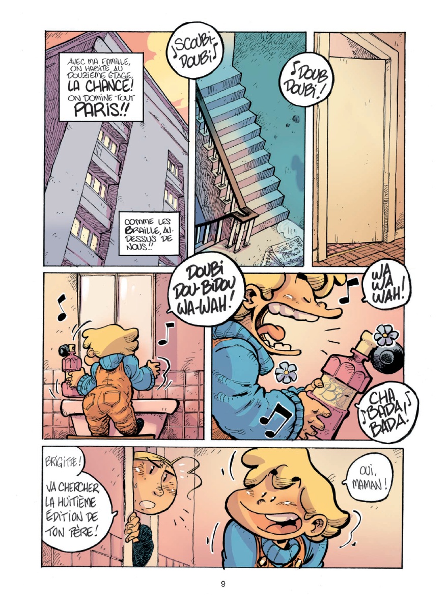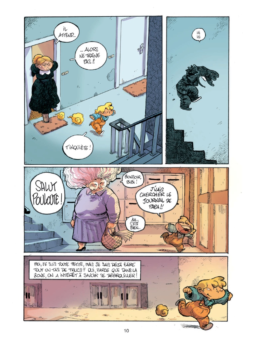 alut, moi c'est Bibi ! J'ai 5 ans ! Ou 8... Je ne sais pas vraiment... Ce dont je suis sûre, c'est que ma vie, c'est un sacré bordel ! D'abord, y a la zone. Une sorte de grand terrain vague où les gens pas riches comme nous s'entassent. On s'y amusait bien, avant la construction du périphérique... Moi, le périph, je l'ai vu grandir ! Après, y a mes copains : Nénesse, le clochard fantastique, érudit et anarchisse ; Pouloute, la grand-mère que j'ai jamais eue ; M'sieur Muguet, l'aveugle au grand coeur...